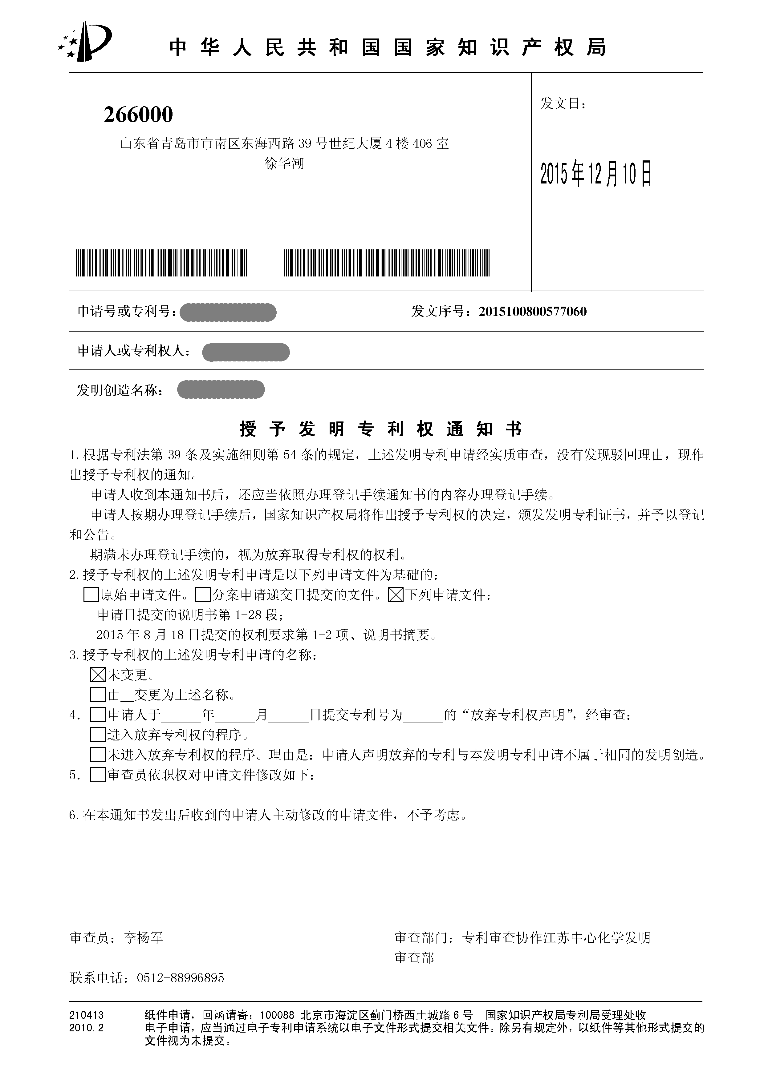 浙江農(nóng)林大學(xué)-發(fā)明專利授權(quán)通知書